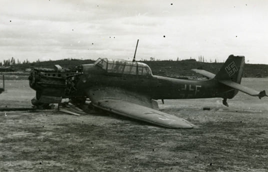 Rovaniemi airfield, Finland: Ju 87R-2 L1+FU (WNr 5705) of 10.(St)/LG 1 after landing accident on 10th July 1941.