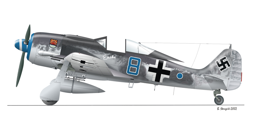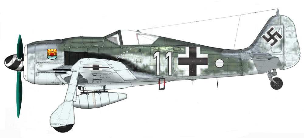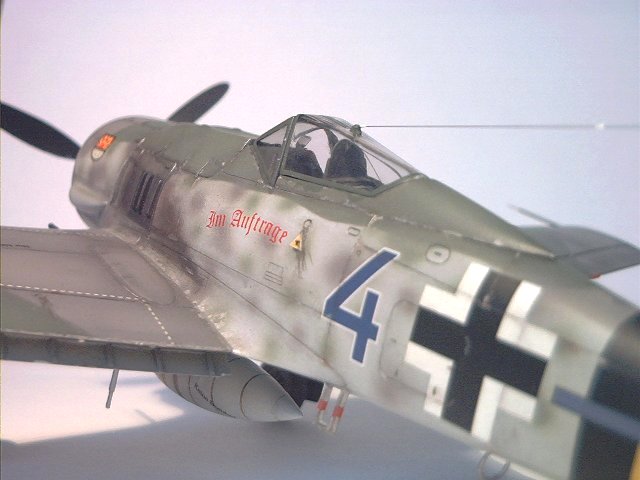 Насчет ФВ-190 синяя 4 по-моему лажа. На Синей 4 летал командир 12 штаффея Руди Линц. Есть его довольная рожа в кабине и под ней подпись Gretel. Im Auftrage с немецкого переводится как "в заказе", "заказано" - сомнительно, чтобы так писали на реальных самолетах.