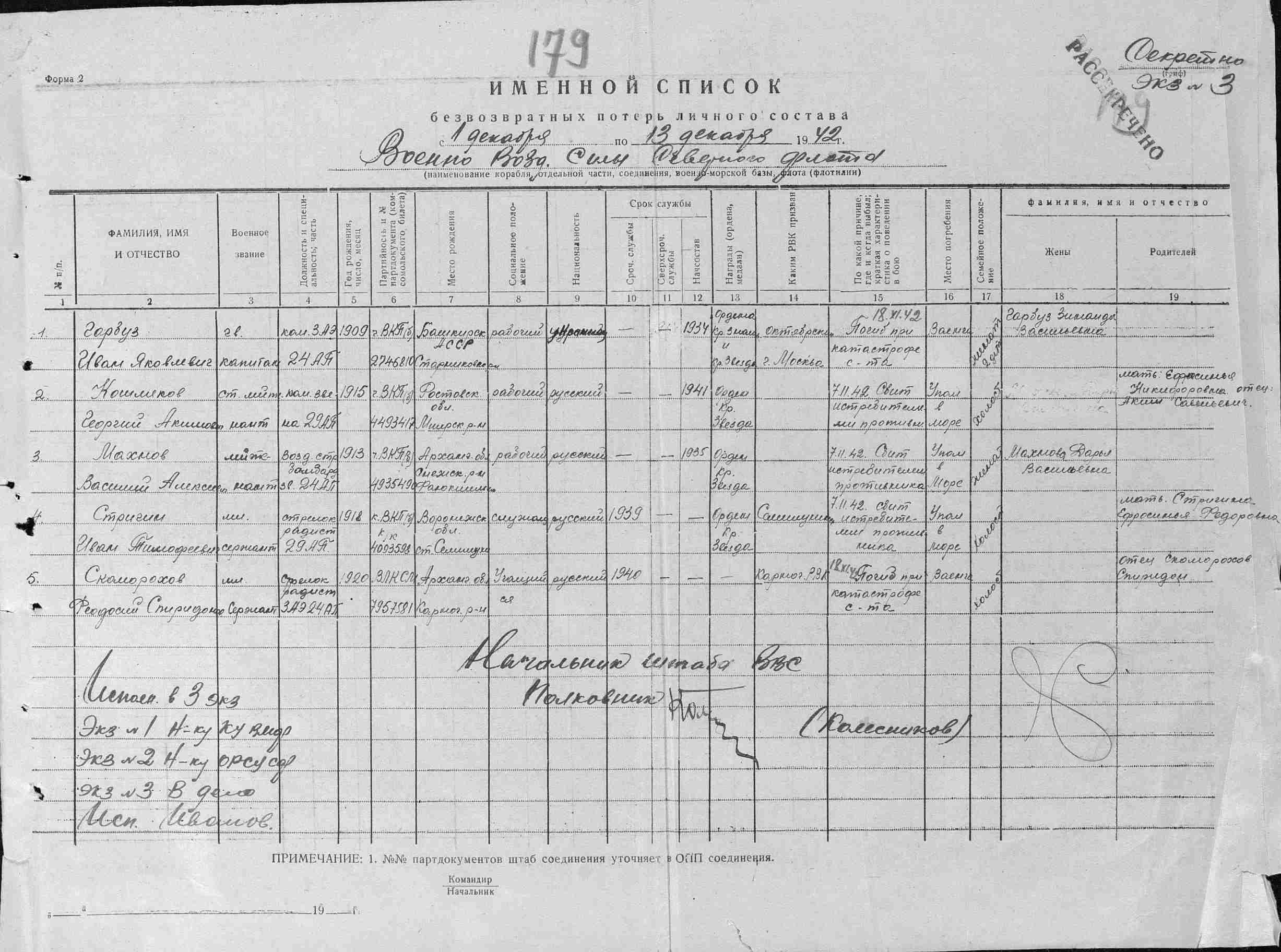 Точно!AlexGor писал(а):... а вот Берденников Иван Антонович, 1916 г.р., ур. Архангельска, еще и 25 апреля 1943 года погиб, но уже в другом экипаже и в другом полку - 24 АП ВВС СФ... И ФИО такое, что не спутаешь... видимо остался он жив 5 октября...