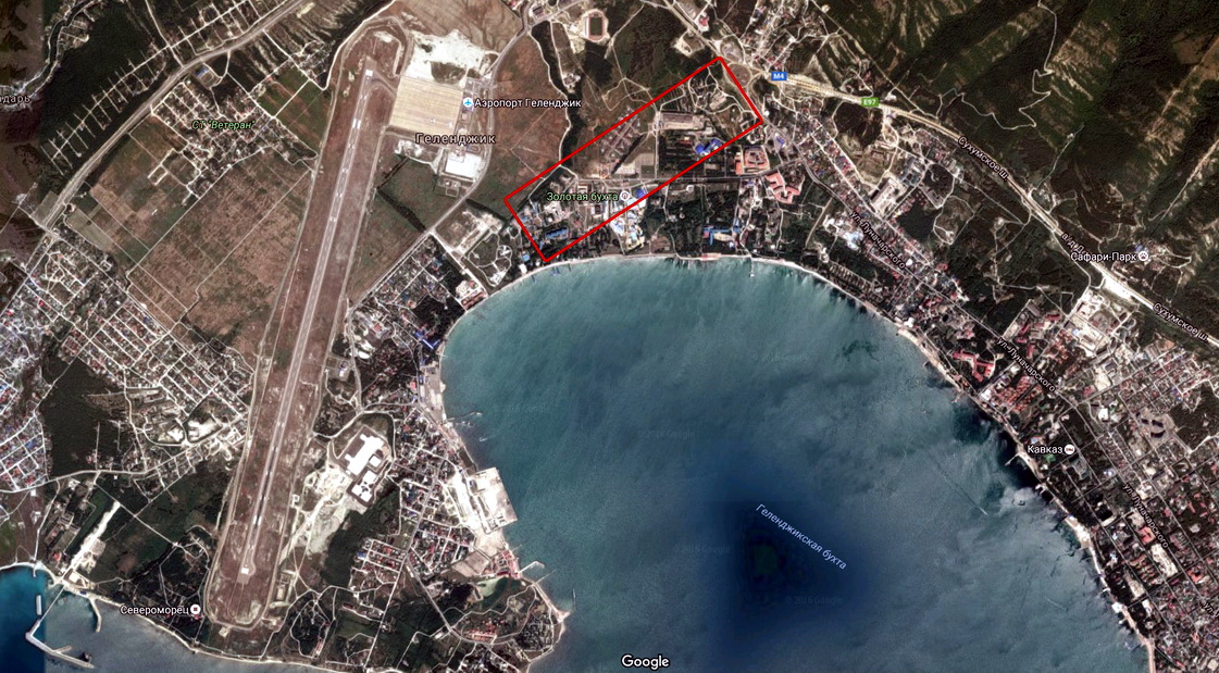 Кстати, съёмка в полёте-тоже Геленджик. Снято над бухтой. Сергей правильно определил ВПП, которую мы обозвали дорогой. Старая полоса не совпадает с современной, её и было видно в кадре. Что до строения, х.з. что это, может и не строение вовсе. Это территория старого аэродрома.