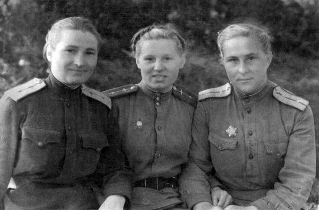 Нарыл таки. На обороте фотки карандашом надпись: летчицы слева направо Антипова А.Г. Минаева П.А. Добромыслова К.Е. Само фото в ряду фотографий обозначено как: летчицы Карельского фронта.