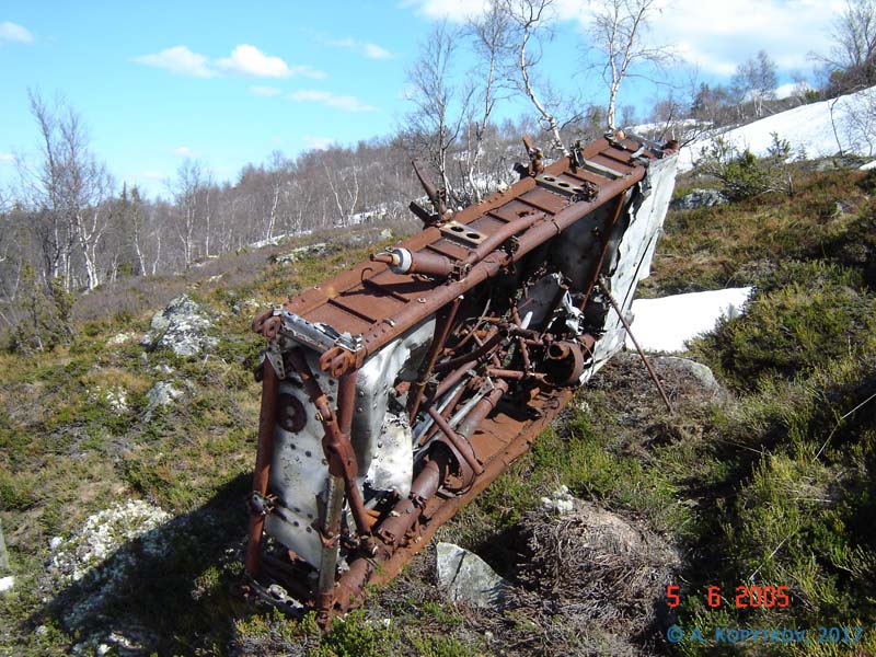 Прошло два года. Во время одного их походов на обследование месту падения бомбардировщика СБ в районе горы Кильдинская, на берегу небольшого ручья наткнулись на остатки мотора: шатуны, клапана, гильзы цилиндров, шпильки и шестерни. По деталям определили тип мотора – английский Merlin XX. Мотор был расколот сборщиками цветмета. Пришлось прервать поход и заняться поисками «Харрикейна». Через три часа обследования местности, на склоне сопки в бинокль увидели непонятную металлическую конструкцию.