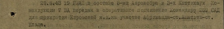 Однако 259 САД, как таковая - смешанная авиадивизия, отсутствует в истории авиационных соединениях 7 ВА. Можно принять, что это опечатка, и имеется в виду 259 ИАД. Но тогда приходиться признать, что в публикуемых в инете информации об 259 ИАД и 19 Гв.ИАП отсутствуют данные об факте участия эскадрилий 19 Гв.ИАП в оперативном подчинении 259 ИАД с мая 43 г. Или же оперативное подчинение считается за незначительный факт в деятельности авиационного соединения?