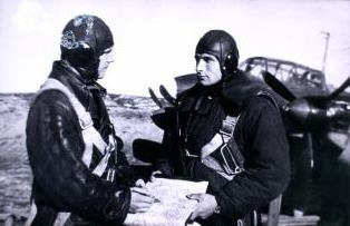, Мл. лейтенант В.М. Самарин, штурман Герой Советского Союза лейтенант П.С. Шеин, перед вылетом на разведку.