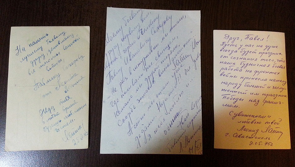 Здравствуйте! Я являюсь внуком комэск-3 78 ИАП ВВС СФ Героя Советского Союза Сахарова Павла Ивановича. В нашем семейном архиве имеется несколько фотографий Л.П. Лапина. Из рассказов деда, с Леонидом Лаиным его связывала крепкая мужская дружба, что подтверждается душевными подписями к подаренным фотографиям.