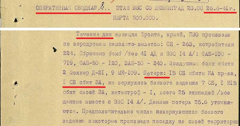 за 26 июня 1941 года про бомбардировки нашими СБ аэродрома Луостари.