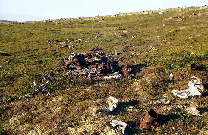 Этот Юнкерс разбился в северной части хребта Исо-Тунтури 9 марта 1942 года. По немецким данным, из-за проблем с мотором (моторами). Мне на местности не удалось определить направление полёта перед ударом о землю, т.к. там скальник, следов нет, и самолёт упал на довольно плотный снежный покров. Принимая во внимание наличие 500 кг бомбы, можно предположить, что катастрофа произошла после взлёта, на маршруте полёта к цели. Вообще, сложилось впечатление, что он шёл в сторону моря, на север. Это могло быть, если бы он взлетел с Луостари. Как бы то ни было, попытка совершить вынужденную посадку с бомбой на подвеске была обречена на провал-большое количество хаотично разбросанных ледником валунов не оставило им шанса. Самолёт буквально раскатился по запчастям на большой площади. Экипаж погиб, похоронен немцами на корпусном кладбище в Печенге (Petsamo Parkkina).