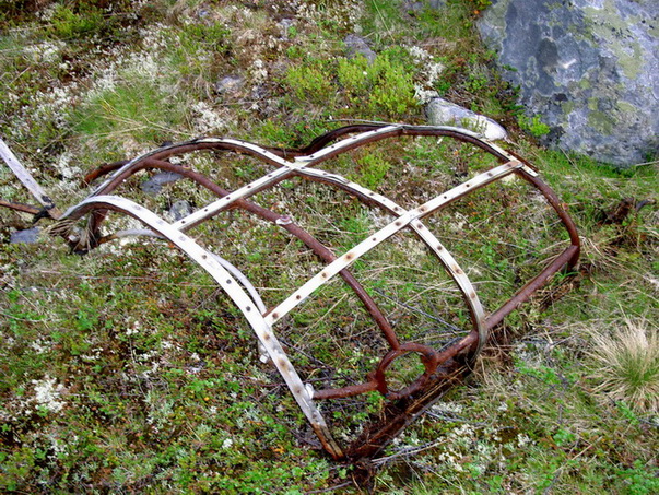 Осмотрев место катастрофы, стала понятна картина события. Самолёт шёл со стороны моря, с севера, и то ли случайно в плохую погоду зацепил за скалы, то ли пытался вынужденно сесть. Местность для этого совсем не подходящая, самолёт, проскользив немного по грунту (или снегу), врезался в каменную стену и разрушился. Экипаж погиб в полном составе, так как нижний входной бронелюк в наличии, как и верхняя сбрасываемая часть фонаря кабины пилотов. К сожалению, не удалось обнаружить Веркнуммер самолёта. Однажды вроде появился человек, который якобы выкопал там жетоны членов экипажа, но как зашёл серьёзный разговор, он так же внезапно пропал. Нашли помимо останков сгоревший железный крест. Так и остался этот Юнкерс с экипажем неидентифицированным. Склоняюсь в пользу зимней версии, нашли часть нижней обшивки, где были хорошо заметны следы скольжения, продольные царапины. Если б было лето, этот лист об камни порвало бы в клочья. Может, это бомбардировщик А-4, так как моторы с деревянными лопастями, может разведчик. Кто знает...