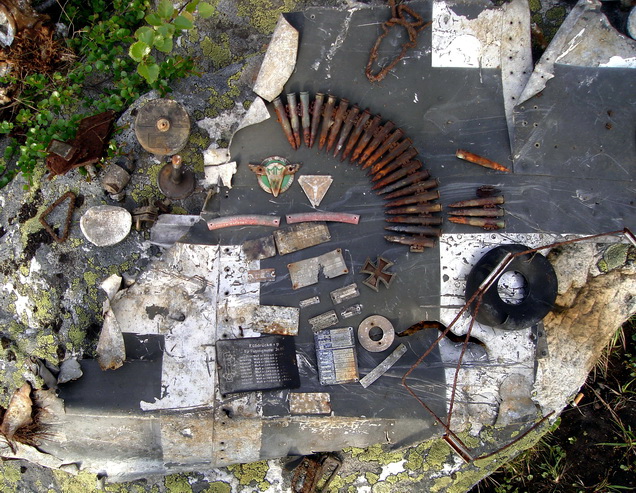 10 июля 2006 года мы с Романом Неудахиным отправились на поиски самолёта, который якобы кто-то видел севернее швабской дороги (Schwabenweg) в районе "пистолетного" озера (Ораярви). Как-то быстро мы его нашли, можно сказать, почти прямо на него вышли. Вернее, сначала Рома под ногами заметил часть человеческого черепа, а потом ниже мы увидели место "приземления".