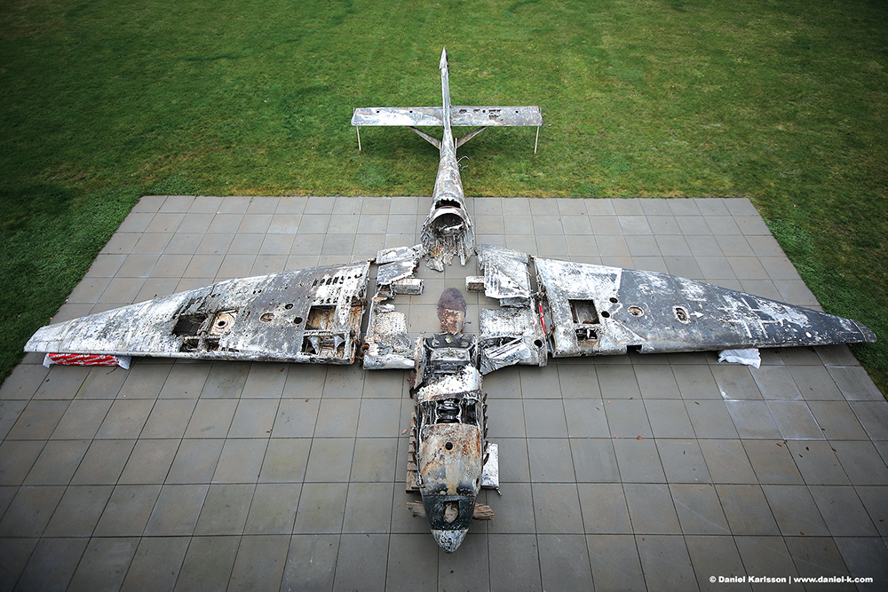 ...Это самолет Ju-87D-5 (заводской номер 131587). Прикрепленный к 1/SG5 в Финляндии в 1944 году, он использовался для задач непосредственной поддержки с воздуха на замерзшем севере. Эту «Штуку» под позывным Q9+CH . Экипаж: Lt. Walter Ernest и Uffz. Ernest Zenker. 4 апреля 1944 года у самолета закончилось топливо, и он приземлился на замерзшее озеро. Не имея возможности вернуть самолет, они взорвали гранату в кабине, что сделало самолет непригодным для использования, и бросили его тонуть в озере во время весенней оттепели...