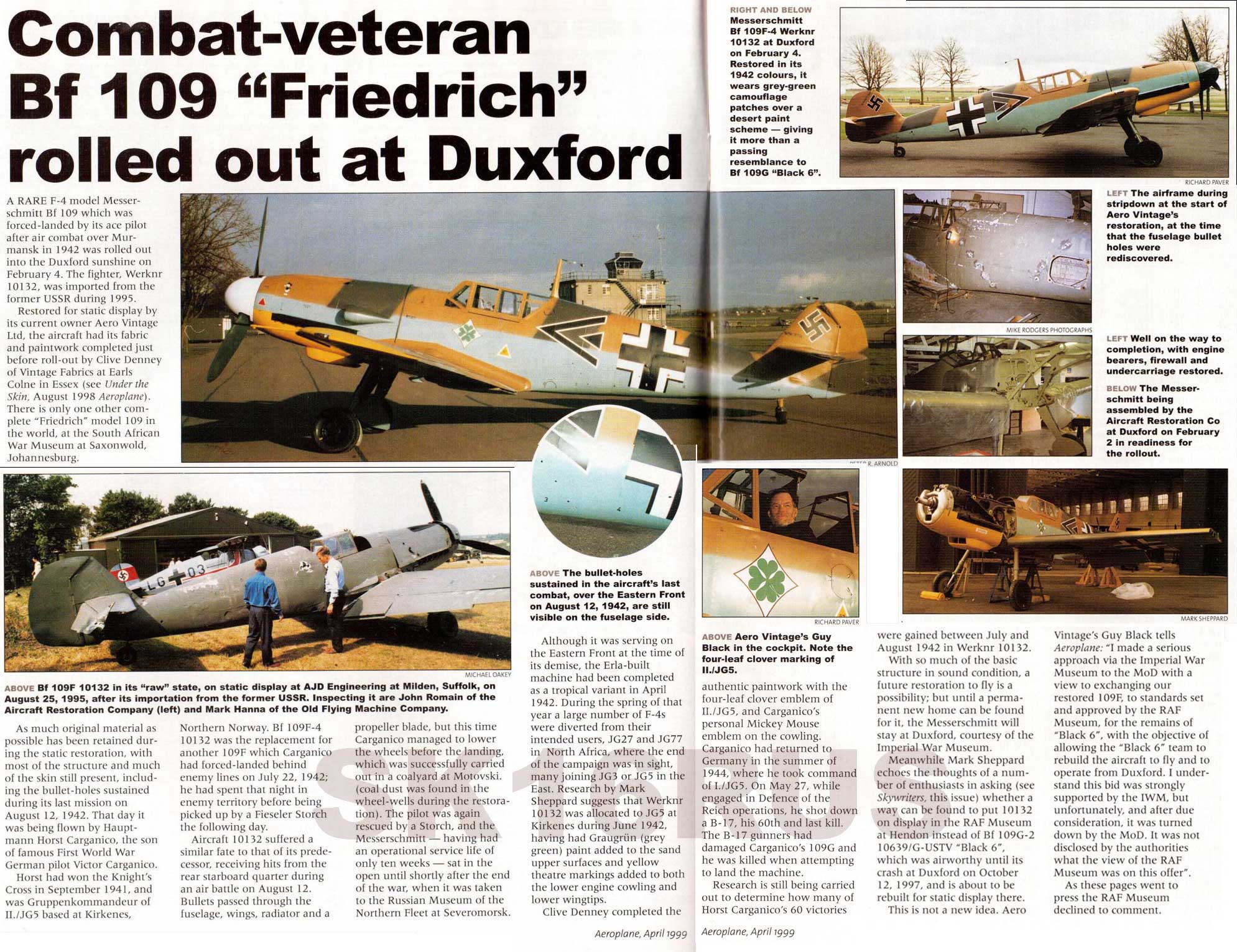 12 августа 1942 г. Bf-109F-4/Trop W.Nr. 10132 "CD+LZ" Хорста Карганико был подбит в бою и совершил вынужденную посадку в районе Мурманска. Пилот был спасен на Fi-156 "Storch", а его "Мессершмитт" отправили в Музей ВВС Северного флота в Североморске. Потом в 1995 г. этот самолет самолет продали английской фирме "Aero Vintage Ltd", где он был восстановлен. В июле 1999 г. самолет был передан Канаде и теперь демонстрируется в Канадском Музее Авиации в Оттаве.