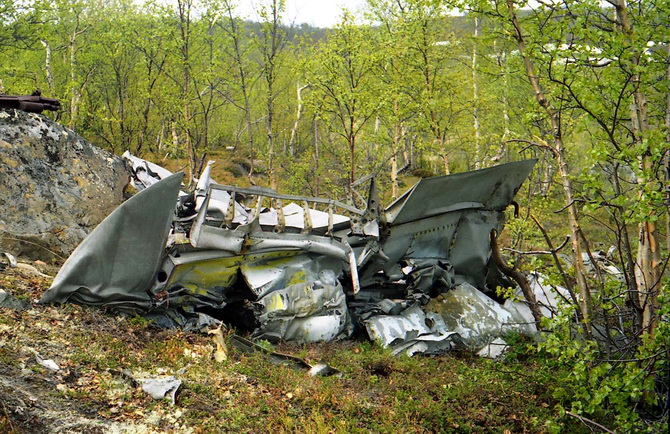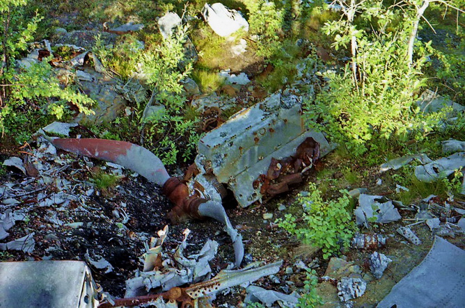 Самолёт упал с подфюзеляжным подвесным топливным баком-его остатки присутствовали среди обломков.