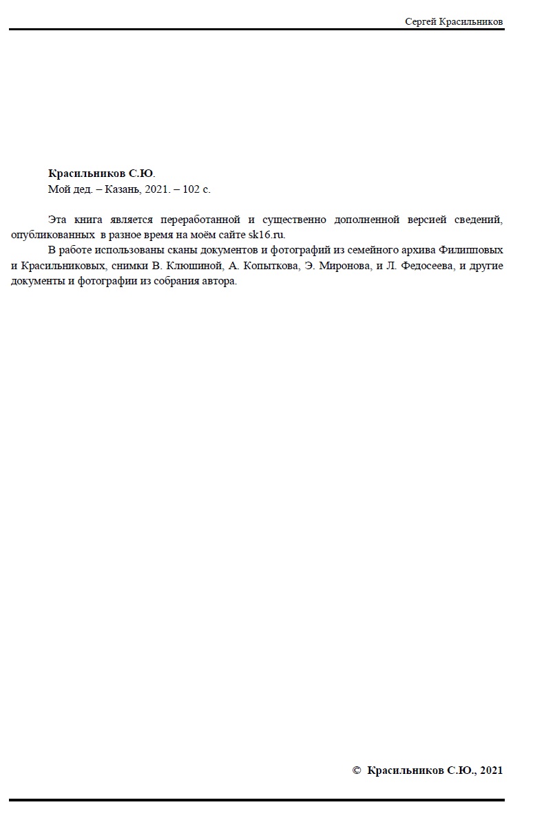 В работе использованы сканы документов и фотографий из семейного архива Филипповых и Красильниковых, снимки В. Клюшиной, А. Копыткова, Э. Миронова, и Л. Федосеева, и другие документы и фотографии из собрания автора.
