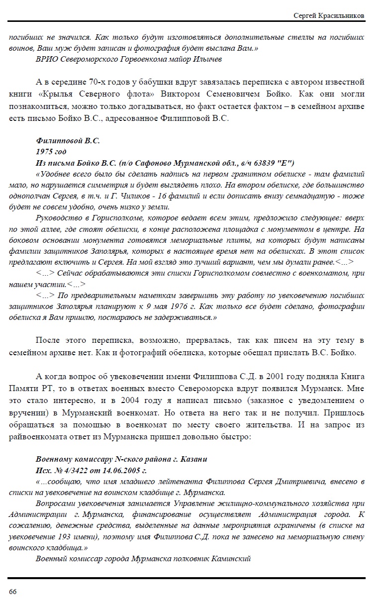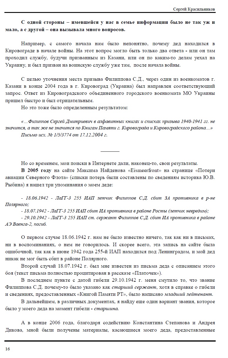 После 2011 года поступление различного рода информации продолжалось, в имеющийся текст что-то добавлялось, какие-то данные корректировались, а что-то из книги было убрано совсем. К концу 2018 года она приобрела вроде бы законченный вид. В ней не хватало только главного – данных о месте гибели и захоронения Филиппова С.Д.