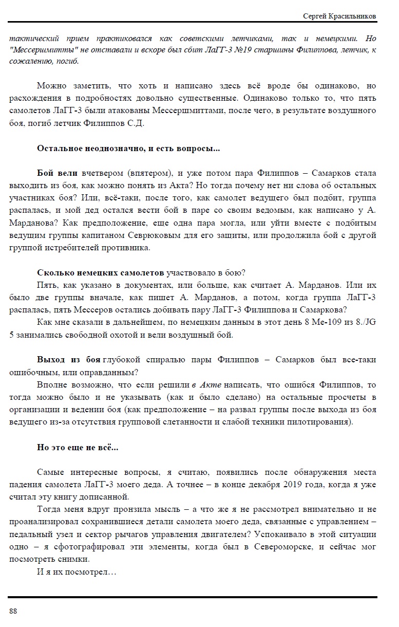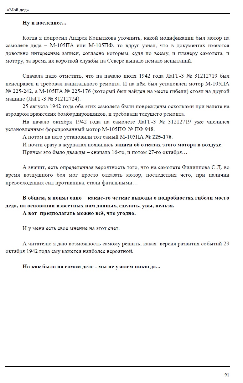 А значит, есть определенная вероятность того, что на самолете Филиппова С.Д. во время воздушного боя мог просто отказать мотор, последствия чего, при наличии превосходящих сил противника, стали фатальными…