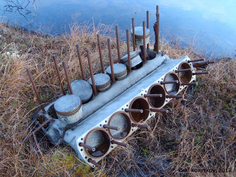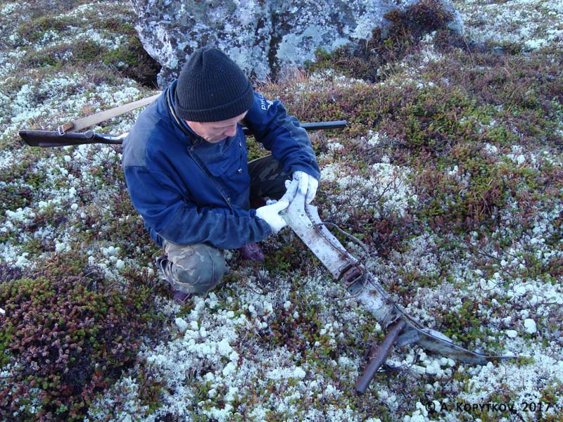 По мобильному телефону набираем коллег в Мурманске, и через минуту, по номеру мотора, узнаем историю найденного штурмовика. Продублирован номер мотора и на крышке редуктора. Его остатки вначале спутали с камнем под мхом. Отлетел на 150 метров от места падения самолета.