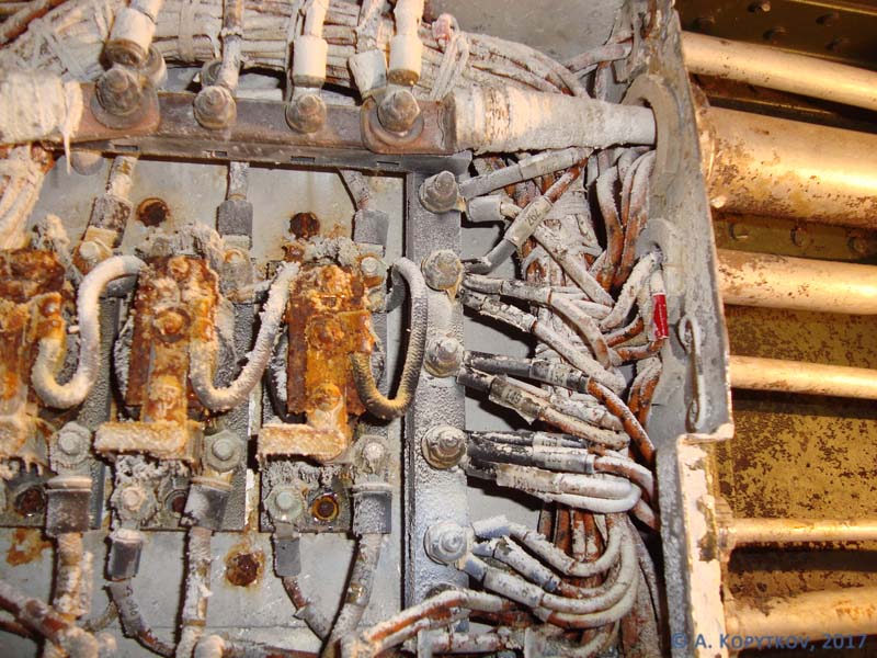 На крышке распределительной коробки размещены держатели для запасных предохранителей. Карандашом написан конструкционный номер самолета «14-450»: 14 – модель, 450 – порядковый номер серии.