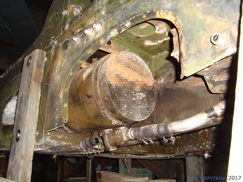 Не пощадила коррозия переднюю стойку: цилиндр очагами прогнил насквозь. С него демонтировали все конструкционные элементы, т.к. восстанавливать его нецелесообразно и сотрудники музея придумали ему другое назначение в экспозиции.