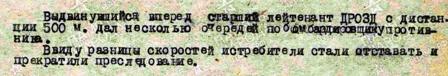 В ЖБД дивизии это отражено так: В ЖБД полка практически то же самое, без указания фамилии летчика. Никаких упоминаний о френдли фаер. Ст лейтенант П.М.Дрозд начинал службу в 767 ИАП и, после инцидента, видимо, был переведен туда же. Погиб 13.12.42 при отражении налета противника. Обстоятельства гибели кажутся странными. Хотя, может быть, человек был ранен. Надо посмотреть заявки немцев на эту дату.