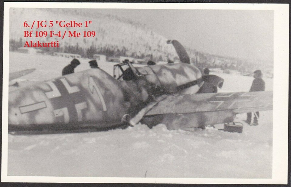 Аттрибутирован, как самолет Фридриха Дана, Lt. Friedrich Dahn из 5./JG5. 04.04.42. На ФБ определили, как Bf 109 E-7 WNr.5017, попавший под бомбы 3 апреля 1942г. Аэродром Петсамо.