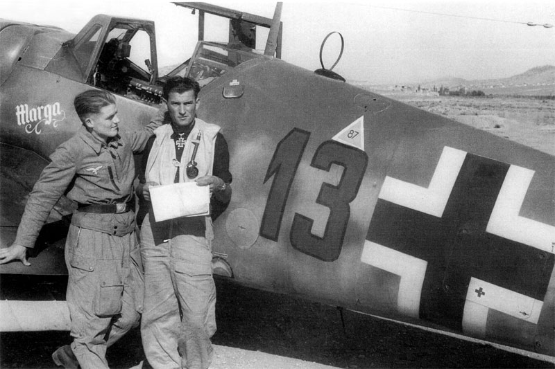 Ведь надо сказать, что среди пилотов тех времён (да и в наше время), причём не обязательно только среди немецких, было модно давать самолётам, на которых они летали, имена своих возлюбленных, невест, жён, любовниц, да и просто знакомых девушек, в которых они были тайно влюблены, или имена актрис, которые им очень нравились. Так, к примеру, «Мессершмидт» F-4 фельдфебеля Йозефа Кайзера (борт. номер «Чёрный» 10) из того же штаффеля 8./JG5, носил имя «Anny». Другой пилот, всё из того же 8./JG5, летавший на «Мессершмидте» с борт. номером «Чёрный» 9, назвал свой 4-й «Фридрих» именем «Rita». При потери самолёта, пилоты, получая новый самолёт, как правило, давали ему уже другое, новое имя – какой-нибудь другой девушки, приглянувшейся им. 8)