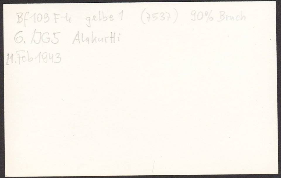 Аттрибутирован, как самолет Фридриха Дана, Lt. Friedrich Dahn из 5./JG5. 04.04.42. На ФБ определили, как Bf 109 E-7 WNr.5017, попавший под бомбы 3 апреля 1942г. Аэродром Петсамо.