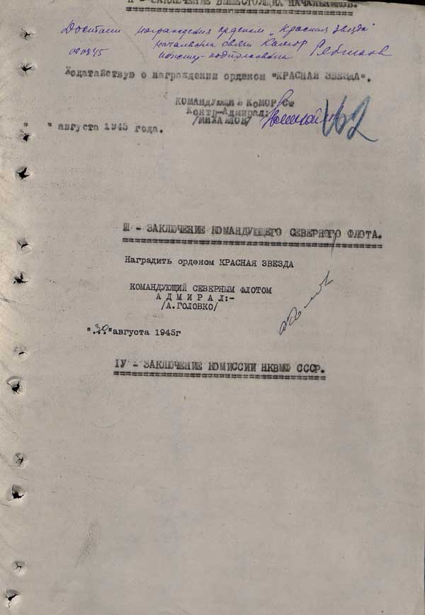 ...Наградные документы составлены летом 1945 года, т.е. спустя год и полтора после описываемыых событий...