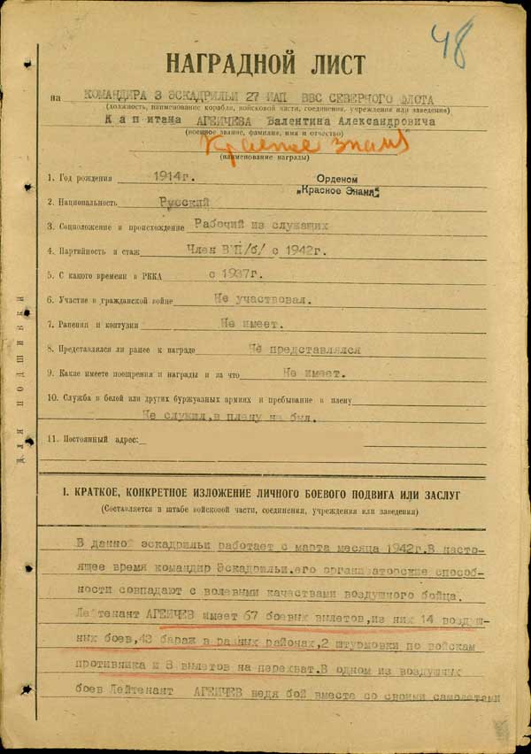 - Пилот был одет в шерстяной свитер и китель. Часть останков вытащили, а часть все еще в болоте лежит - пока не подкопаться. Вот начнем самолет вытаскивать и остальное достанем, к захоронению подготовим, - говорит поисковик Егор Тимофеев. - Когда проверили куртку и китель - карманы были забиты личными вещами. По ним-то и удалось установить личность пилота - командир 3-й эскадрильи 27-го авиаполка военно-воздушных сил Северного флота капитан Валентин Александрович Агейчев. Документы помогли узнать его биографию: родился в Баку 18 марта 1914 года. В партийном билете указано, что в ВКП(б) вступил в мае 1942 года. С собой в полет брал много фотографий. На них изображены, скорее всего, близкие. Мужчина, судя по форме, кадровый офицер царской армии, женщина на фотографии, возможно, супруга погибшего пилота. Быть может, остались дети и внуки, для которых Валентин Агейчев все еще числится без вести пропавшим.