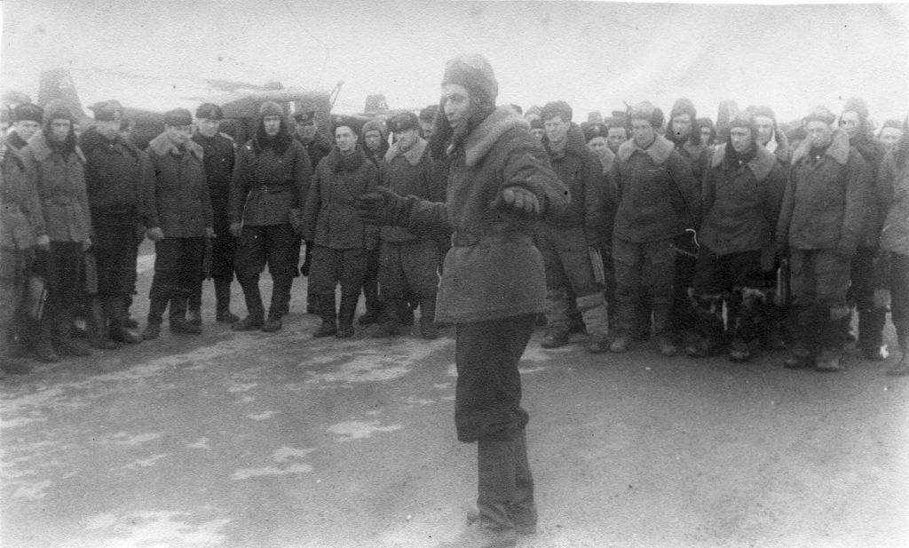 Представляемая фотография хранится в нашем семейном архиве. Малоизвестна, хотя ранее и публиковалась. На мой взгляд, этот "разбор полетов" очень точно отражает напряженный характер боев 46-го шап осенью 1943 года.
