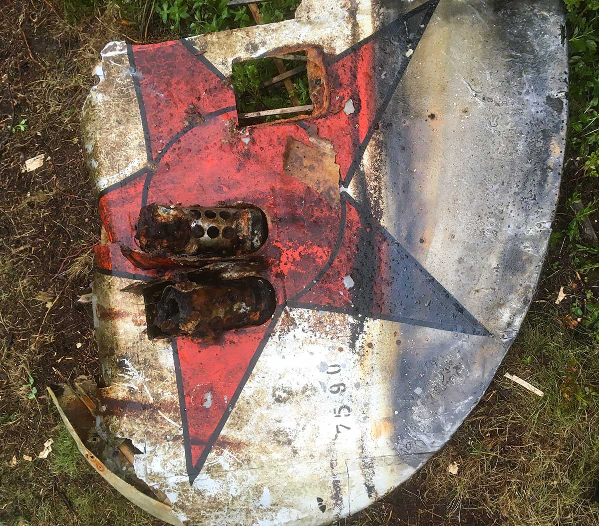 На грунте, где был найден самолет, установлен вымпел с эмблемой Северного флота в знак почестей летчику, защищавшему Заполярье.