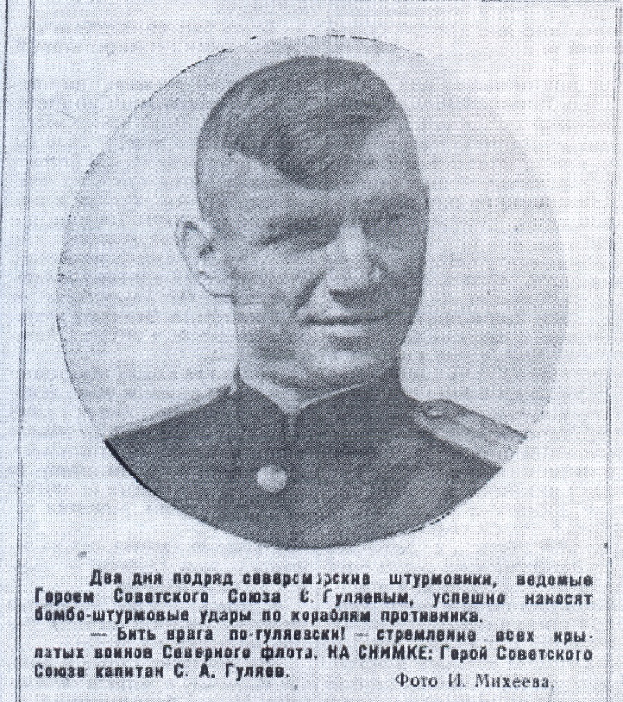 На снимках командир 1-й эскадрильи Герой Советского Союза Гуляев Сергей Арсентьевич и командир звена 1-й эскадрильи лейтенант Пантюхов Сергей Иванович.