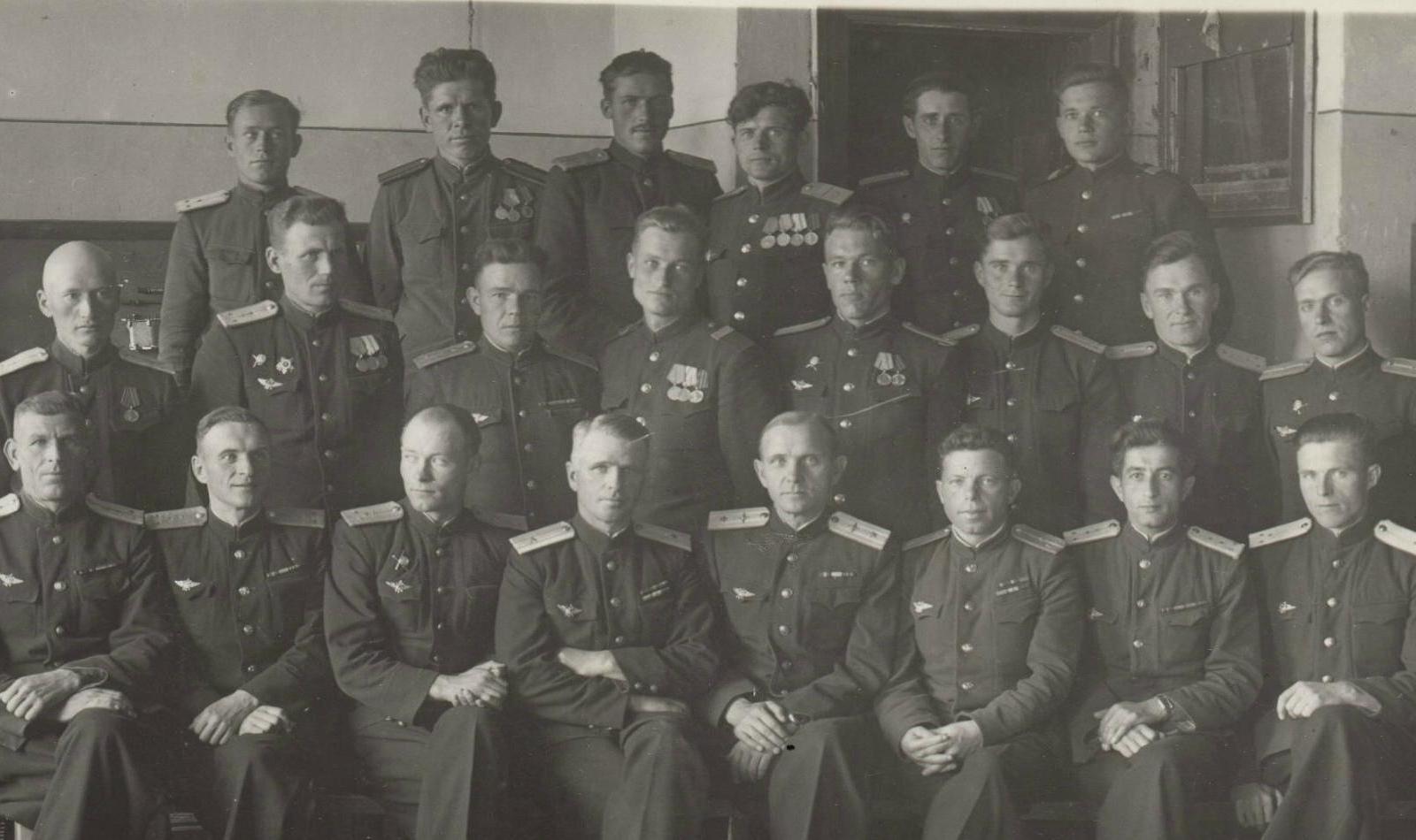 Как более подходящий вариант можно рассмотреть еще кандидатуру, стоящую во втором ряду справа на групповом снимке - довольно сильно похож на Вашего... Но кто это, я не знаю. Известны только сидящие в первом ряду - это Сорокин З.А. (2-ой ГвИАП), Рассадкин П.А. (255-й ИАП), Бокий Н.А. (2-ой ГвИАП), Шкаруба К.Ф. (9-й ГвМТАП), Синегуб Г.И. (255-й ИАП). И фото сделано в профилактории.