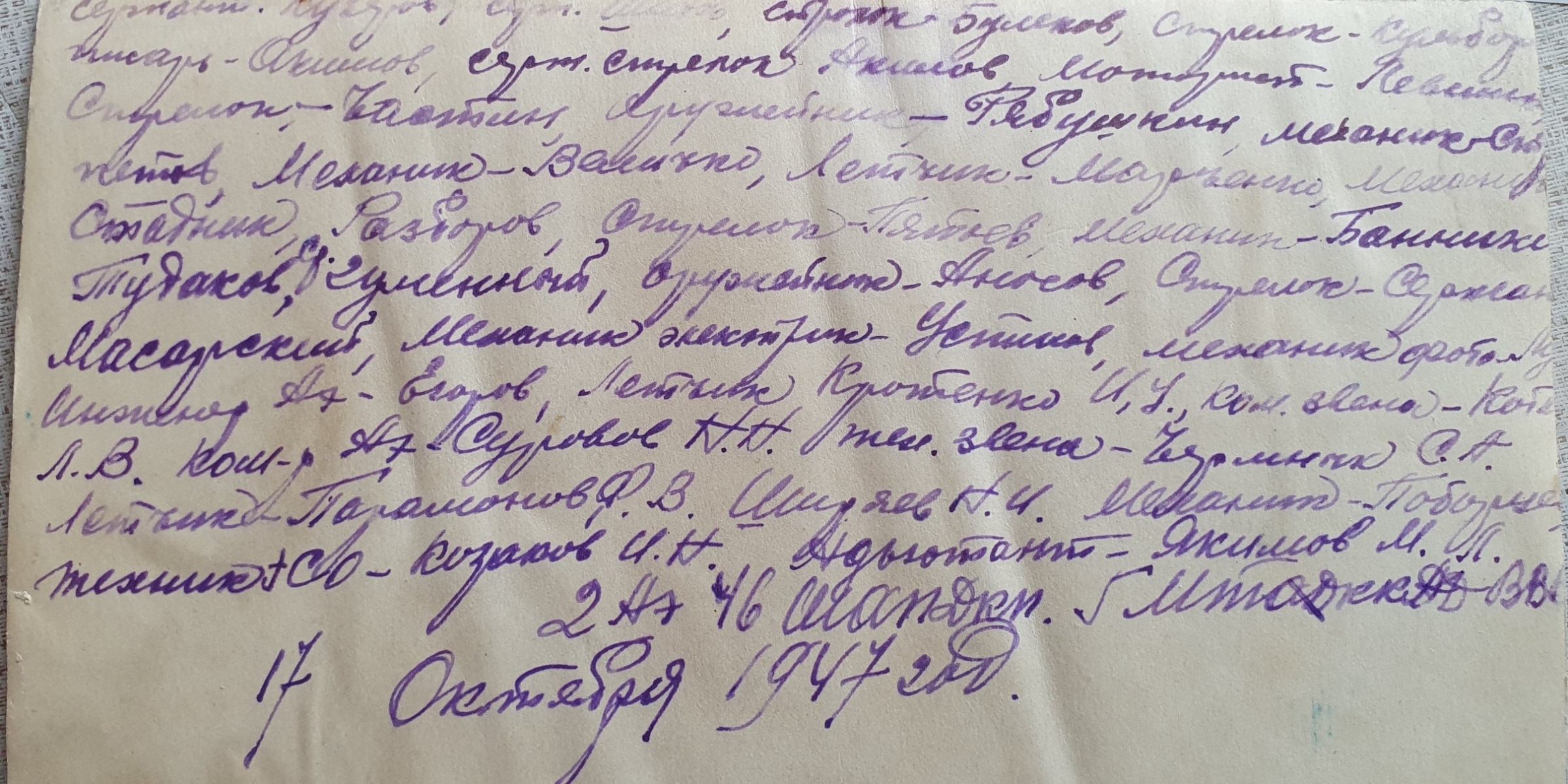 Откровенно порадовался групповой фотографии от 17 октября 1947г., особенно увидев рядом со ст.лейтенантом Сурововым, на тот момент командира 2-й авиаэскадрильи, командира звена лейтенанта Котлякова Леонида Васильевича.