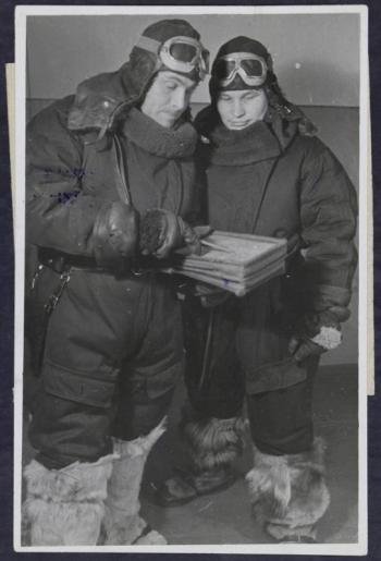 Летчик, дважды орденоносец, капитан Сечкин В. М. и старший политрук, орденоносец Бушихин Н.П. Декабрь 1941, Фото - Е.Халдей