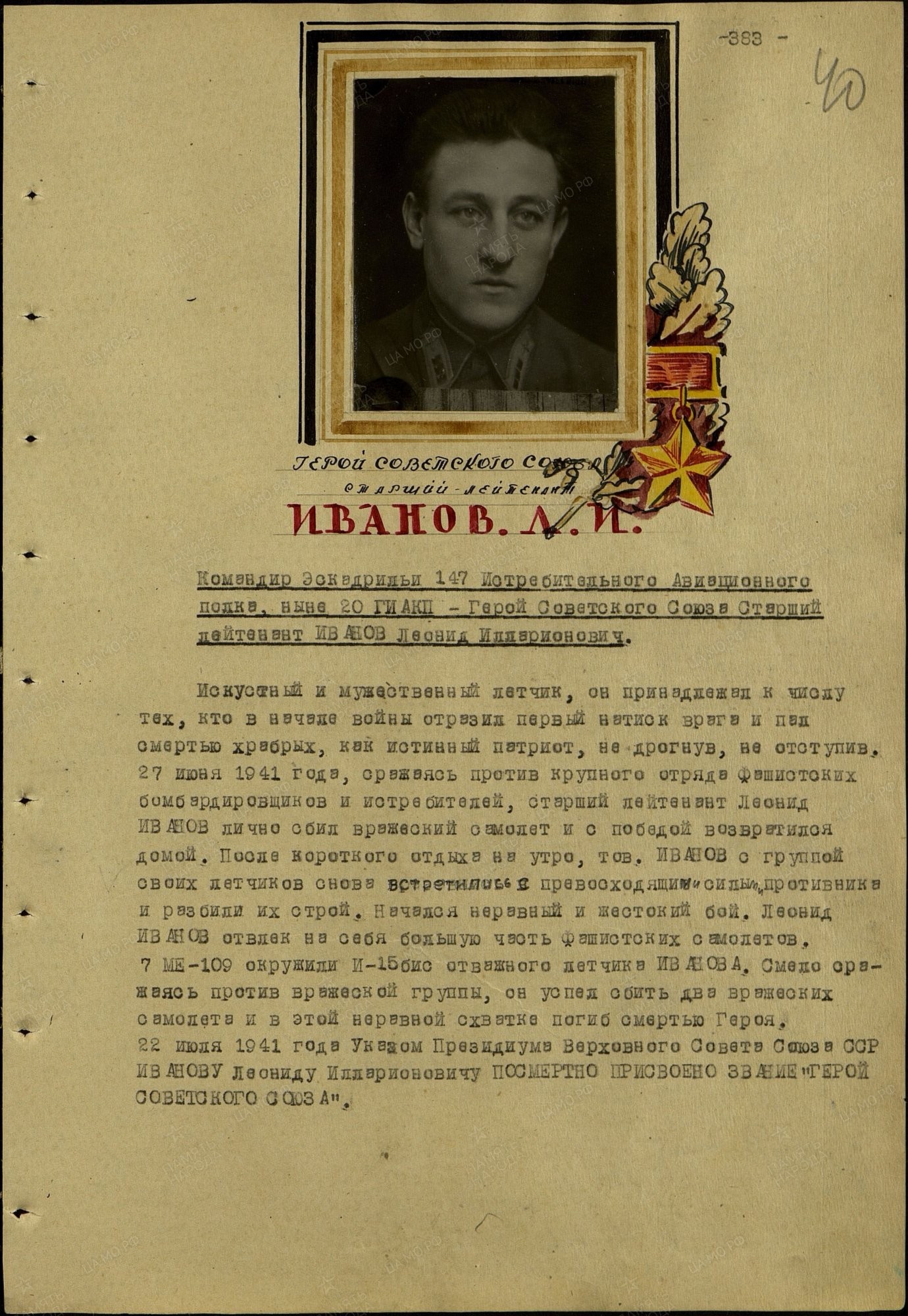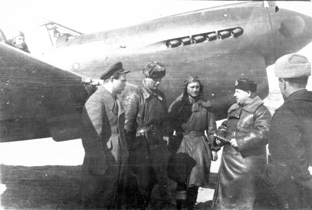 Может быть Крутиков или Пшенев? К сожалению у меня нет их фотографий. Хотя кадр постановочный, и это может быть кто угодно из летчиков полка