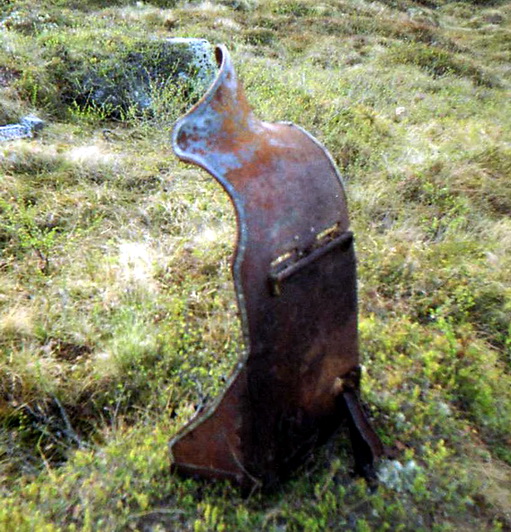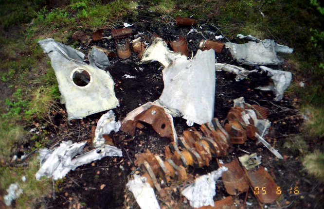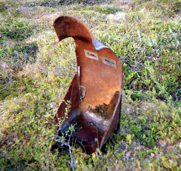 Неизвестный Юнкерс 88, судя по штампованному креслу А-4. Упал в 10 км севернее флотских аэродромов Ваенга-1 и Ваенга-2 на берегу озера Ретинское-1. От самолёта ничего не осталось, так как рядом проходит дорога на Полярный. Фото предоставил Бидненко Юрий. 2005 год.