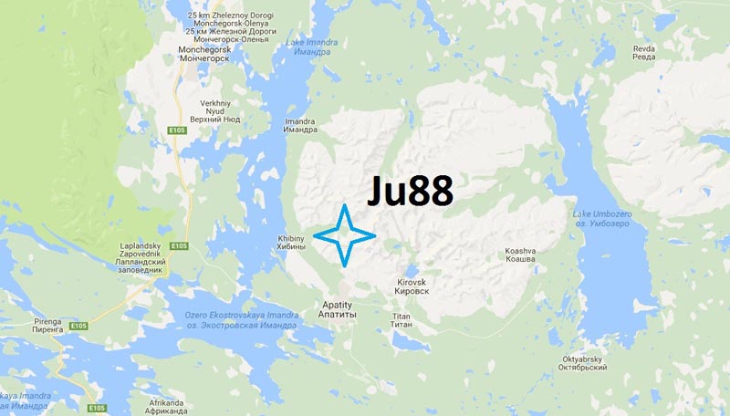 Место падения Ju-88А-5 WNr. 7378 - озеро Имандра. На месте падения бомбардировщика были обнаружены два раскрывшихся парашюта и куртка с погонами. Экипаж не найден. Льда, скорее всего, еще не было на озере.