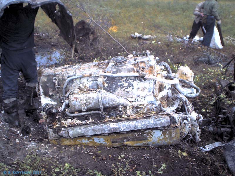 Bf 109G-2 W.Nr.13427 "жёлтая 2" из 9./JG 5 был потерян с пилотом в 15 км западнее Мурманска 29 февраля 1944 г. Как я понял из Момбека, ему отрубил винтом хвостовое оперение собственный ведомый. Ведомый благополучно приземлился в Петсамо с погнутыми концами лопастей, а Lt. Wolfgang Rost парашютировался и был взят в плен. Самолёт в перевёрнутом виде плашмя упал в болото. Найден был в начале 2000-х по крокам, составленным ВНОСовцами в районе севернее горы Медвежья Каменная. Сейчас там идёт строительство новой железнодорожной ветки Выходной-Лавна. Фото предоставил Сергей Поливанов.