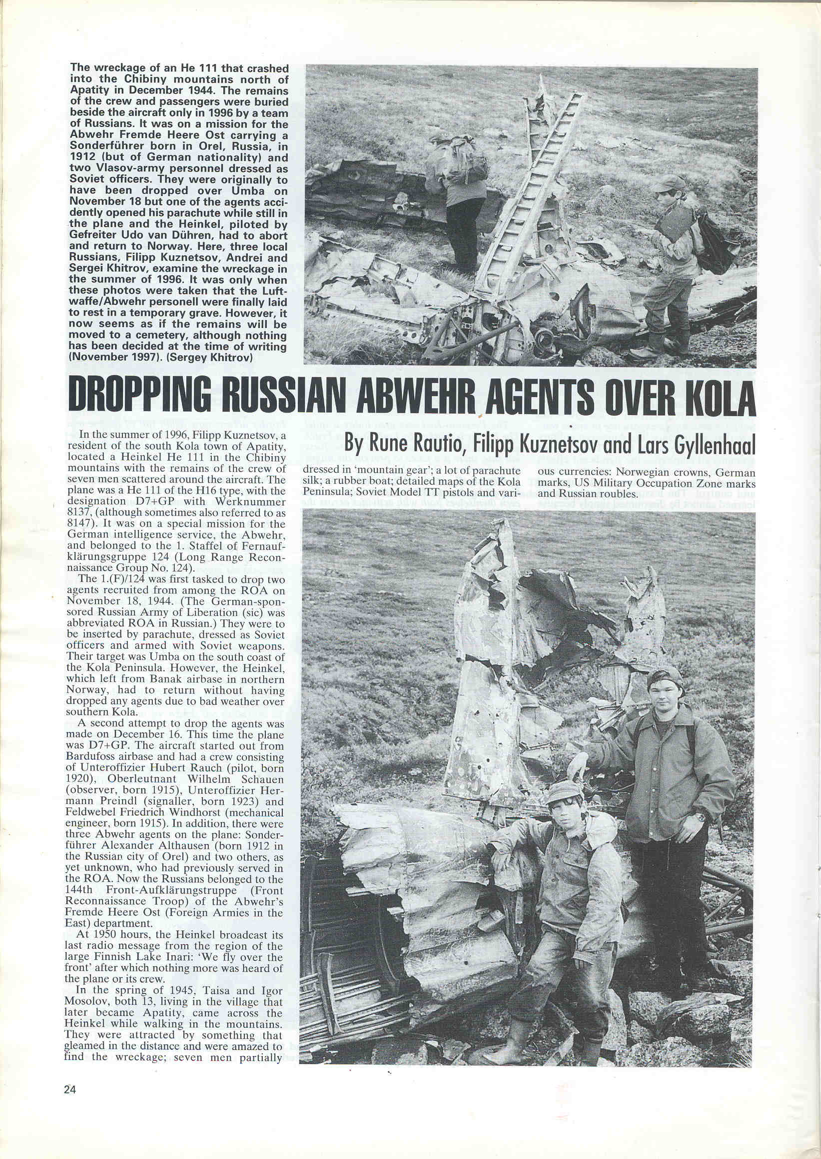 На Блокгаузе тоже упоминался Хе 111 не раз. В Мурманском вестнике статья была "Через школу абвера - домой", сайт почему-то недоступен сейчас.