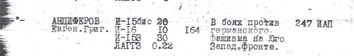 Вероятно, это часы налёта на ЛаГГ-3 именно в составе 255-го ИАП, так как на этом типе самолета Анциферов Е.Г. летал еще в составе 247-го ИАП.