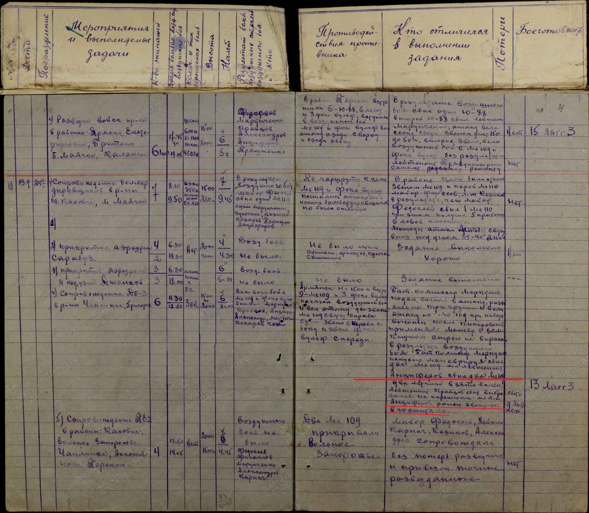 Хотя не понятно, почему в документе, составленном ранее, общий налет больше, чем на момент гибели... Где-то, видимо, опечатка...