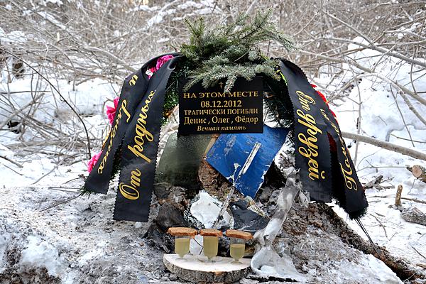 ...Родственники, Друзья, и знакомые возложили венки и установили памятную табличку на месте крушения вертолёта.