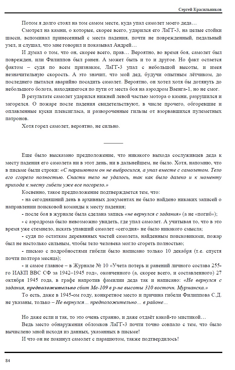После 2011 года поступление различного рода информации продолжалось, в имеющийся текст что-то добавлялось, какие-то данные корректировались, а что-то из книги было убрано совсем. К концу 2018 года она приобрела вроде бы законченный вид. В ней не хватало только главного – данных о месте гибели и захоронения Филиппова С.Д.