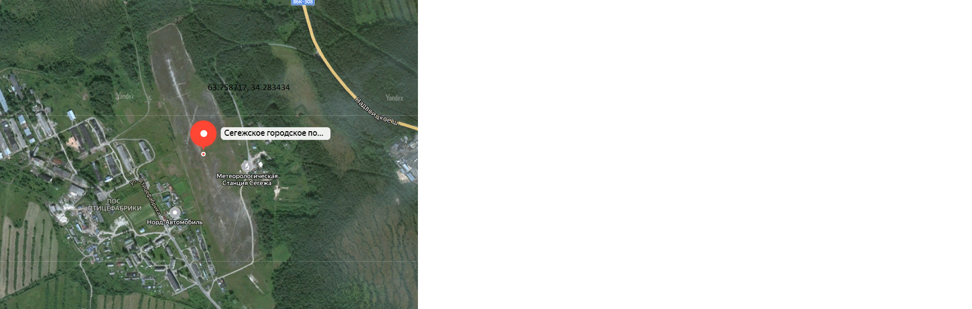 На самом деле здесь две ВПП. Основная, с координатами N63.30093° E034.45548°и запасная или фальшивая! - Уж больно она открытая!
