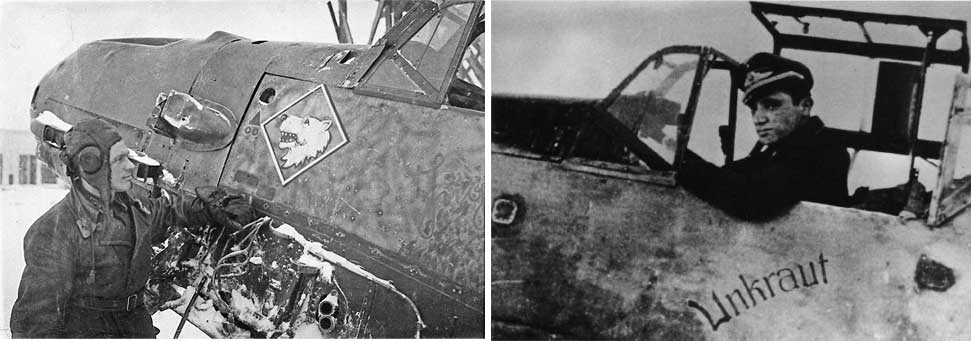 Еще интересно - подпись "Unkraut" (сорняк) они толкуют как недовольство ролью "ябо". Штаффель был создан в самом начале 1942 г. в зап. Норвегии и как я понимаю (может не прав - прочесть 2-4 тома Момбеека я так и не удосужился пока) проходил обучение слетывание и т.п., прежде чем в самом конце апреля прибыть на Вост. фронт. Поглядел я - по прибытии летают в обычные "ягдфорштоссы", есть сбитые противники. Не видать ябо-вылетов. В зап. Норвегии штурмовать вообще некого, так что даже этот тезис кажется мне неверным. Наверное все же путаница идет не только между личностями, но и между номерами штаффелей.