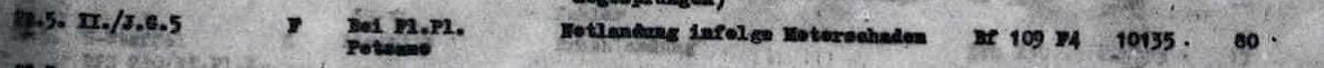 Игорь, в данном случае прав всё же Александр, который утверждает, что причина потери самолёта Видовица в отчётах высокого уровня указана как небоевая. Пусть формулировка причины в сводке ГК весьма туманная, но в Summarische Verlustmeldungen всё однозначно - самолёт потерян по категории №20, то есть "уничтожен без воздействия противника во время боевого вылета".igor писал(а):Термин Motorschaden на мой взгляд оставляет простор для маневра версий: мотор по идее повреждается внешним воздействием, и вряд ли это в него попала птица. Мне кажется, тут мы имеем дело с особенным стилем заполнением ведомости в ГК. Кто-то слишком умный просто отбрасывал "ненужные подробности".