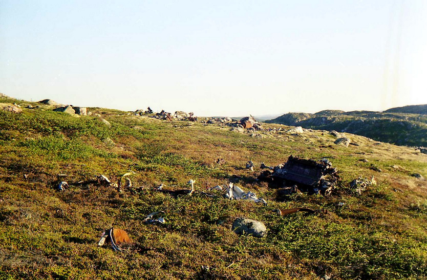 Этот Юнкерс разбился в северной части хребта Исо-Тунтури 9 марта 1942 года. По немецким данным, из-за проблем с мотором (моторами). Мне на местности не удалось определить направление полёта перед ударом о землю, т.к. там скальник, следов нет, и самолёт упал на довольно плотный снежный покров. Принимая во внимание наличие 500 кг бомбы, можно предположить, что катастрофа произошла после взлёта, на маршруте полёта к цели. Вообще, сложилось впечатление, что он шёл в сторону моря, на север. Это могло быть, если бы он взлетел с Луостари. Как бы то ни было, попытка совершить вынужденную посадку с бомбой на подвеске была обречена на провал-большое количество хаотично разбросанных ледником валунов не оставило им шанса. Самолёт буквально раскатился по запчастям на большой площади. Экипаж погиб, похоронен немцами на корпусном кладбище в Печенге (Petsamo Parkkina).