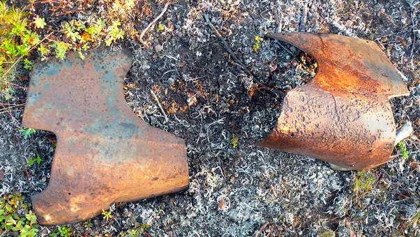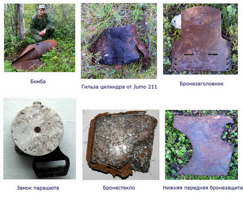 Нашли мы его в конце июня 2006г. Сначала наткнулись на бомбу, потом увидели обломки. Искали его не один год. Информации было хоть одбавляй-"слева за огородами у Луостарской отворотки лежат обломки самолёта". Однако на местности показать никто не смог, не говоря уж про карту. Самолёт упал в болото, воронка заросла, крупные части видимо вывезли в лом строители ЛЭП, которая прошла почти по месту падения. Мелочь потом, как нам сказали, таскали бомжи с Луостари. В итоге нащему взору предстали несколько покорёженных обломков, бронезаголовник да пару кусков брони. Позже вызвонили много чего, в том числе и кусок дюраля с номером самолёта (спасибо Юре Бидненко), а так же бронестекло и парашютный замок-тогда стало ясно, что как минимум один член экипажа погиб с самолётом.