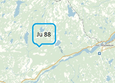 Остатки этого "Юнкерса-88" нашли в долине речки Кумжа в 25 км северо-восточнее поселка Верхнетуломский. Бомбардировщик совершил вынужденную посадку на болото. После войны был разрублен на лом, но не вывезен.