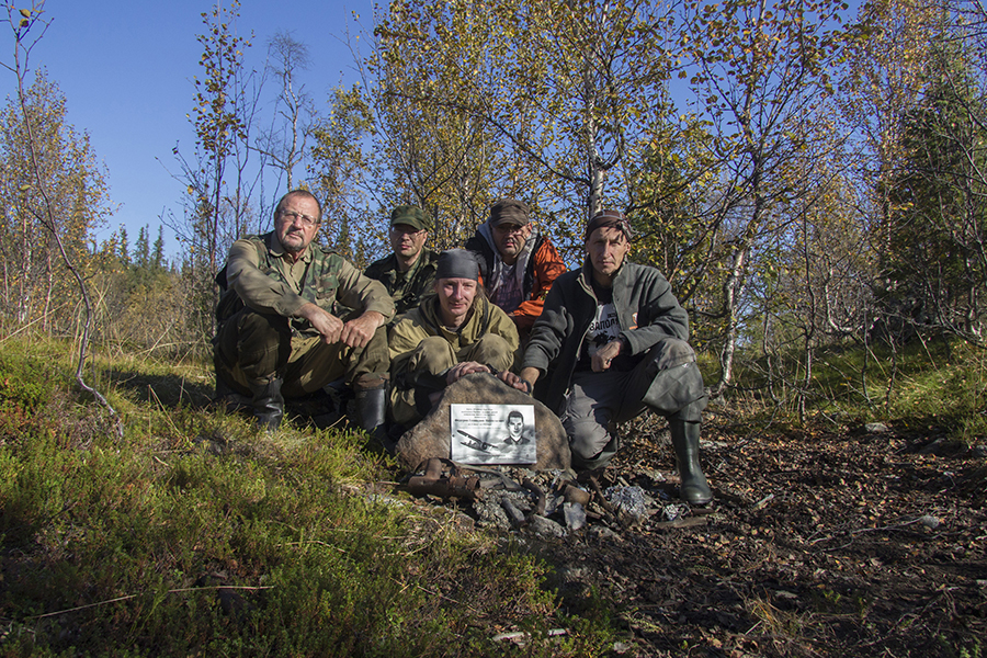 Еще к нам присоединились Альберт Ничипорук и Юрий Бидненко из ПО «Петсамо», которые работали на месте падения самолета и по найденным номерам установили экипаж: С камнями, куда можно было бы установить памятный знак, проблем не было – на месте, куда 12 октября 1944 года упал сбитый самолет, были не только камни, но и целые скалы. Но формат таблички был достаточно большой, размером с лист А3, и мы не знали удастся ли найти достаточно ровную поверхность для того, чтобы табличка плотно прижалась к камню. Поэтому мы заранее озаботились подложкой из стали, которая могла бы нам помочь. Вот сейчас самое время выразить благодарность директору фирмы «Альпстрой» (г. Мурманск) Виталию Ермохину и его работнику (имя, к сожалению, не знаю), которые и помогли нам с изготовлением. Кроме этого Виталий оказал нам посильную финансовую поддержку.